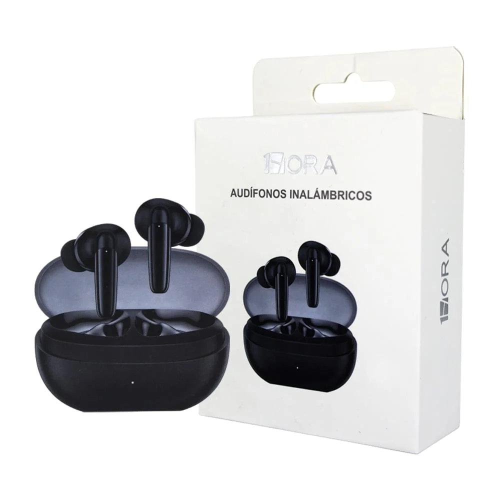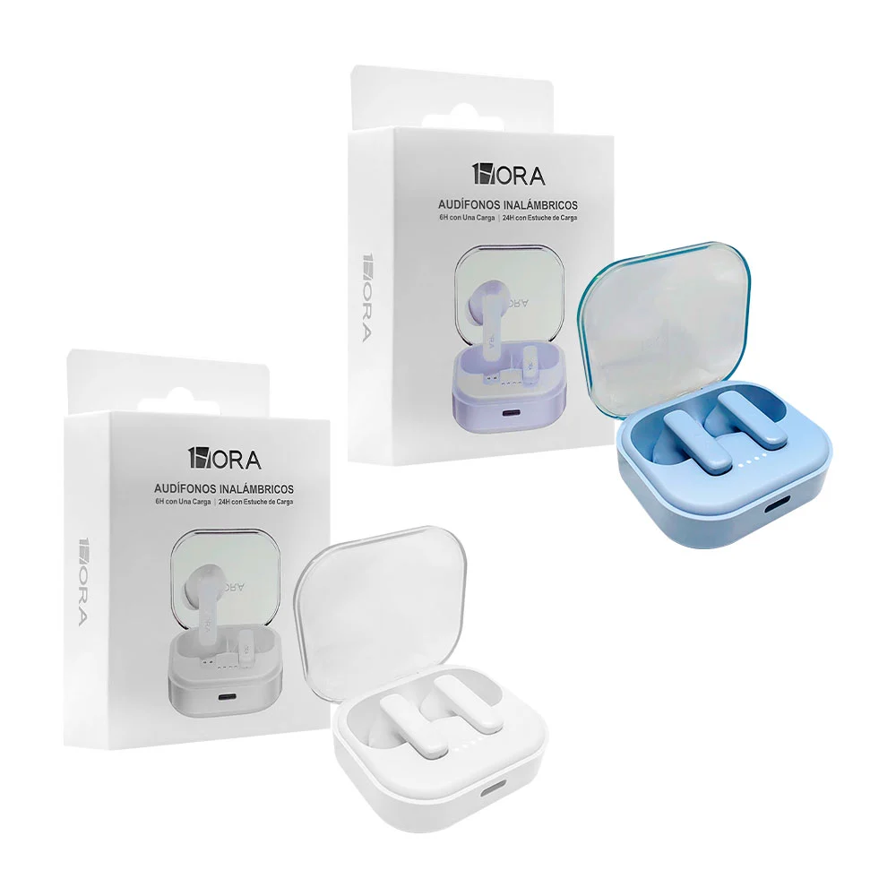 Audífonos inalámbricos 1hora con almohadillas de silicona y estuche de carga ovalado con tapa traslúcida / aut207