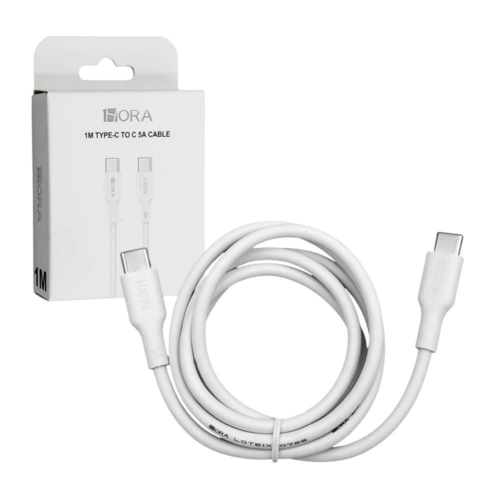 Cable de carga tipo-c a tipo-c 1 hora de 1 metro, 5a, en color blanco / cab280